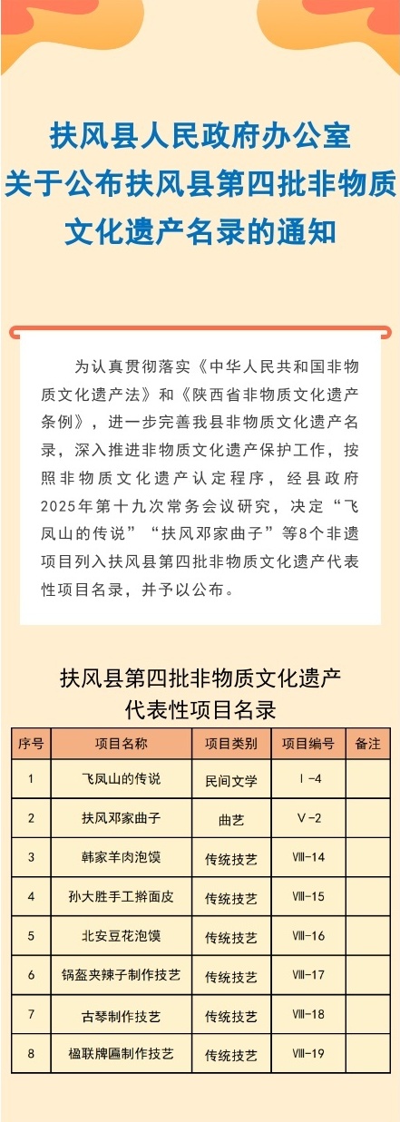 原文链接:扶风县人民政府办公室关于公布扶风县第四批非物质文化遗产名录的通知