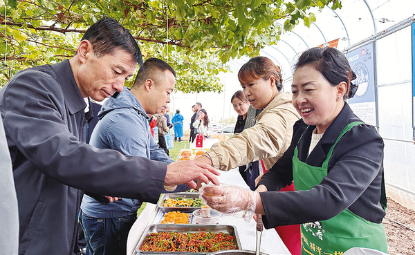 本次活动以“庆农业丰收 享美好生活”为主题,精心组织一系列贴近农民、贴近生活的庆祝活动,旨在全方位展示扶风县“三农”工作的丰硕成果。在展销区,各镇街农业特色在此集中亮相,吸引了不少群众品尝购买。“我们的水果都采用羊粪及发酵菌的发酵技术施肥,皮薄肉厚、个大味美。”来自扶风县木林森种植专业合作社的李立刚拿起自家种植的黄桃向围观群众介绍道。