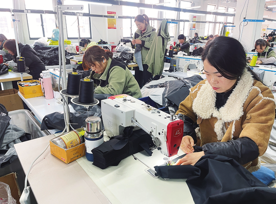 扶风派森体育用品有限公司是无锡派森体育用品有限公司的全资子公司,成立于2021年,是国内专业从事摩托车骑行防风防水类产品研发、设计、生产及销售的企业,产品不仅在国内市场占有率高,还出口到韩国、瑞士等国家。当天,记者在该公司生产车间看到,工人们正忙着板样裁剪、成衣赶制、产品打包等各道工序,现场一派繁忙景象(见右图)。