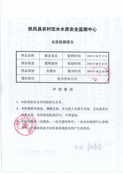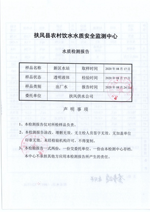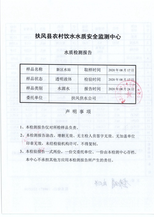 2020年8月新区水站水质公示