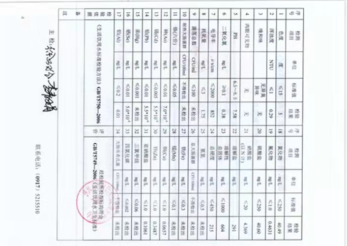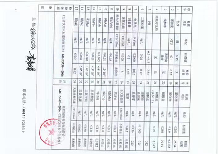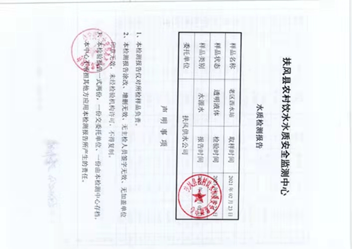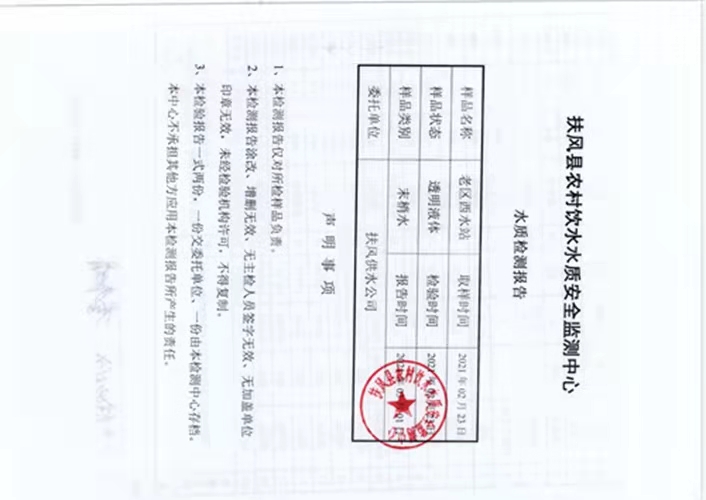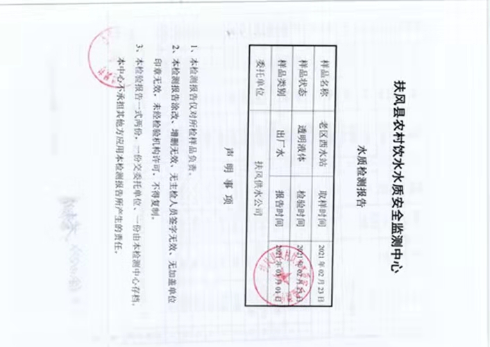2021年2月老区西水站水质检测