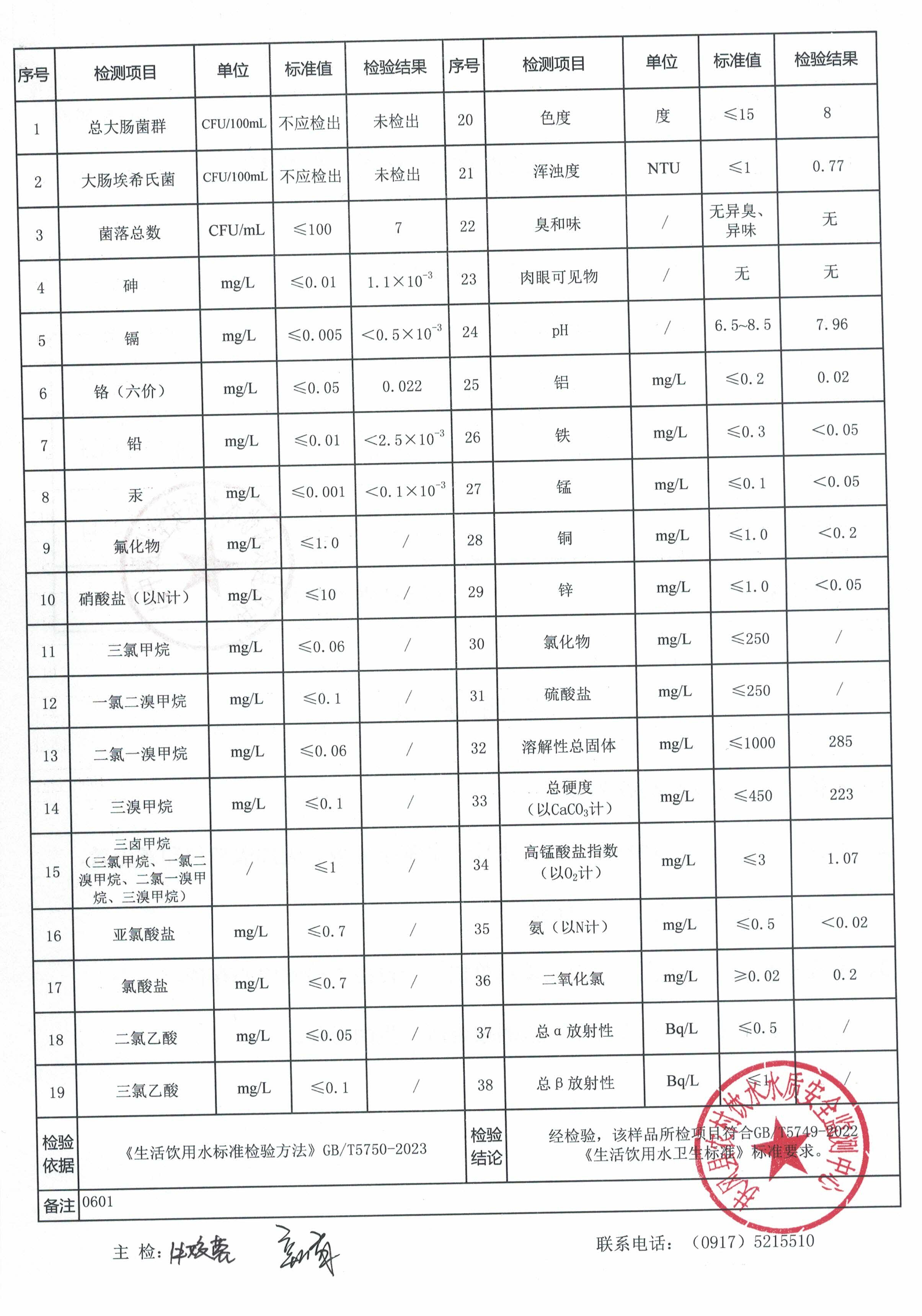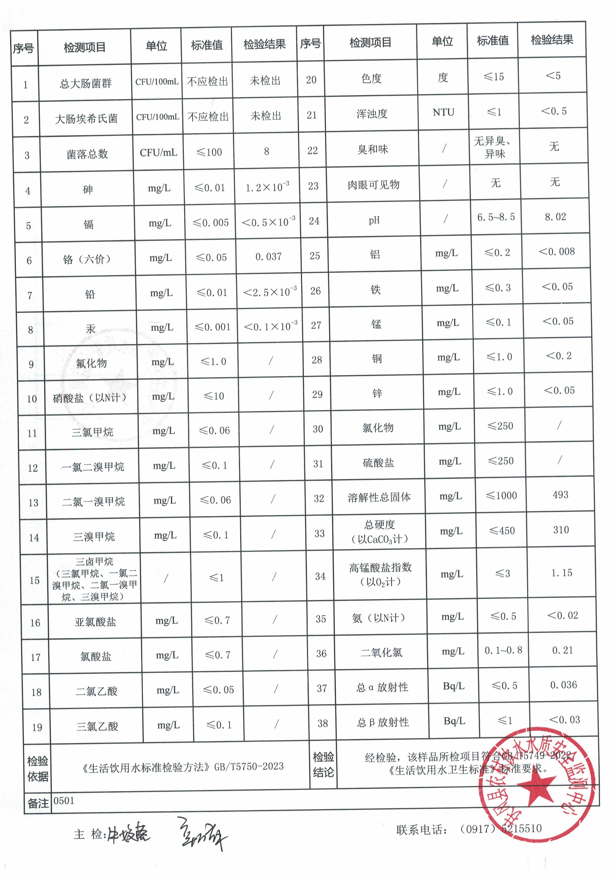 10月份新区供水站水质公示