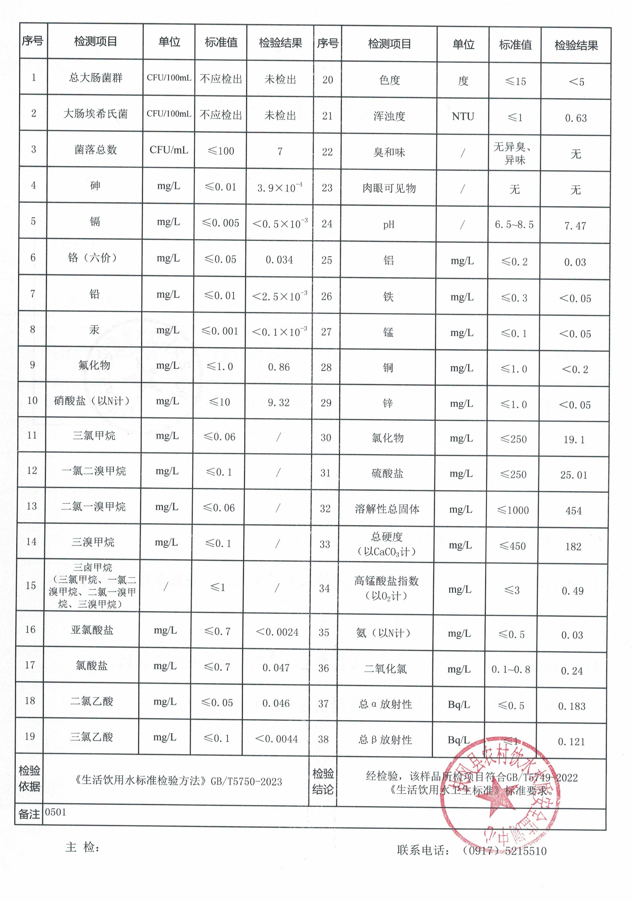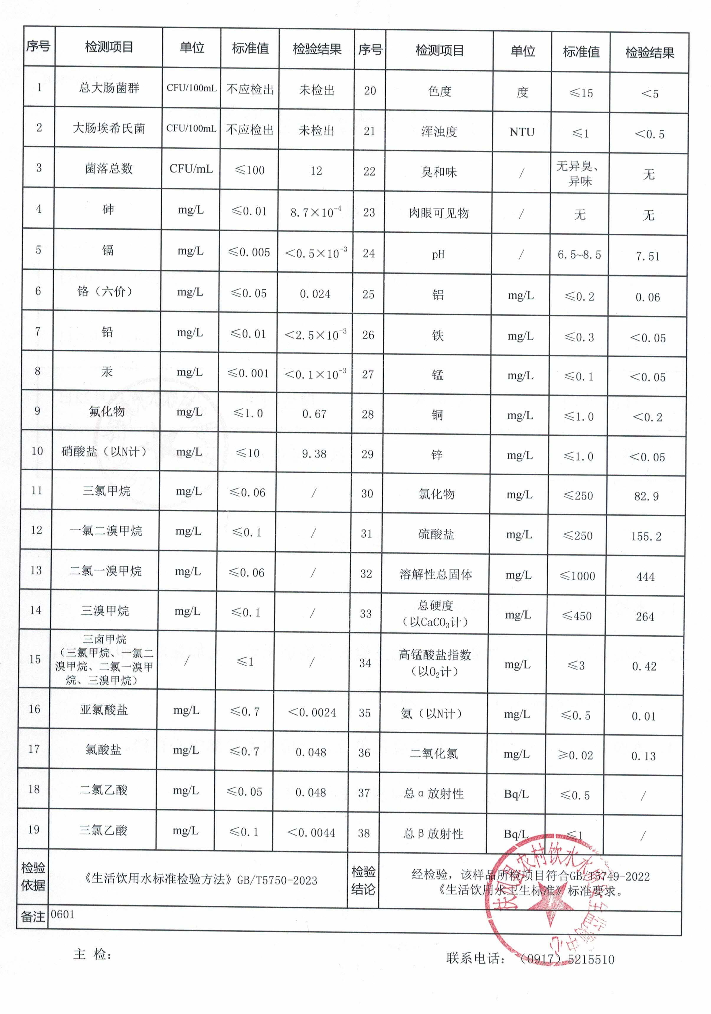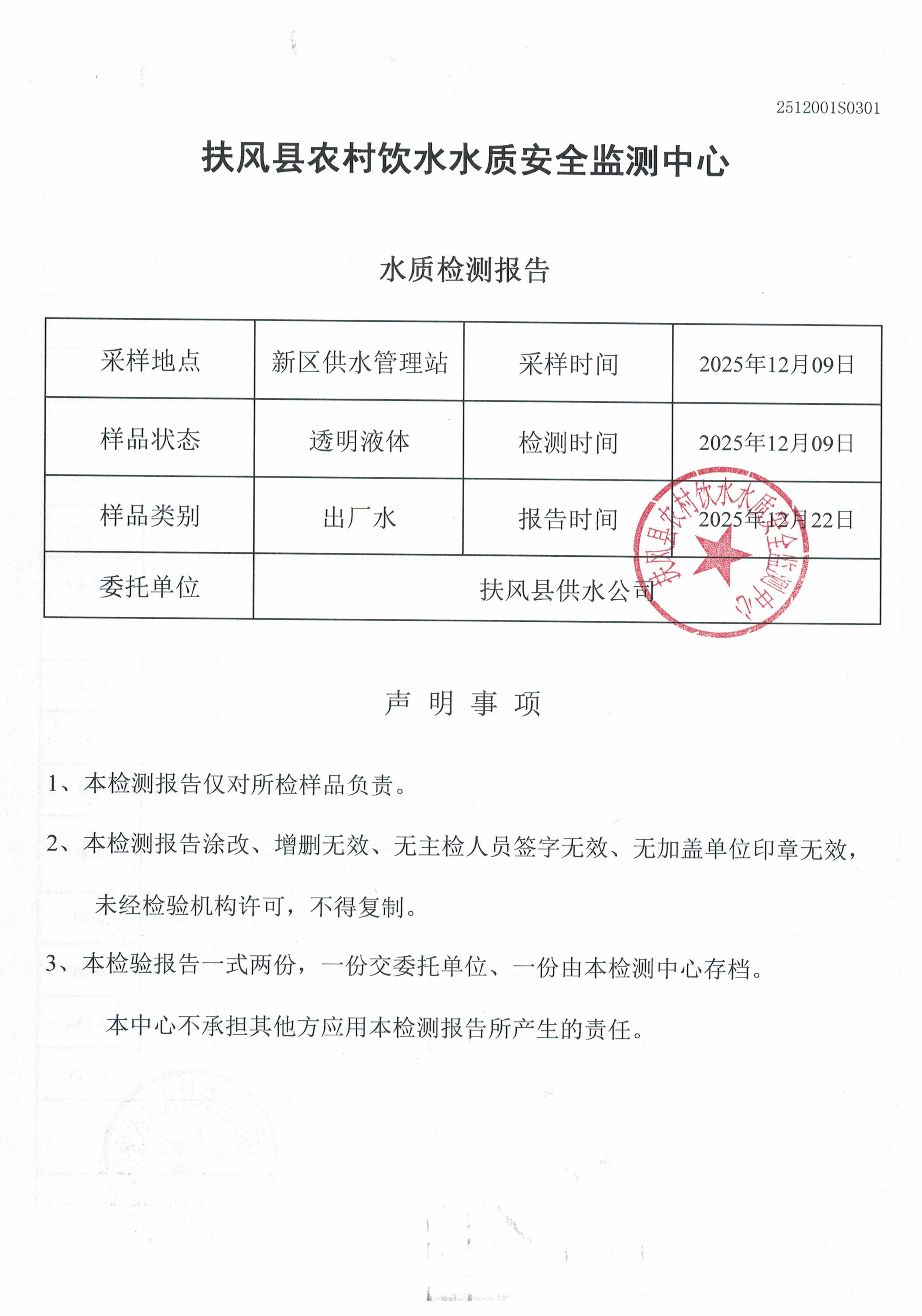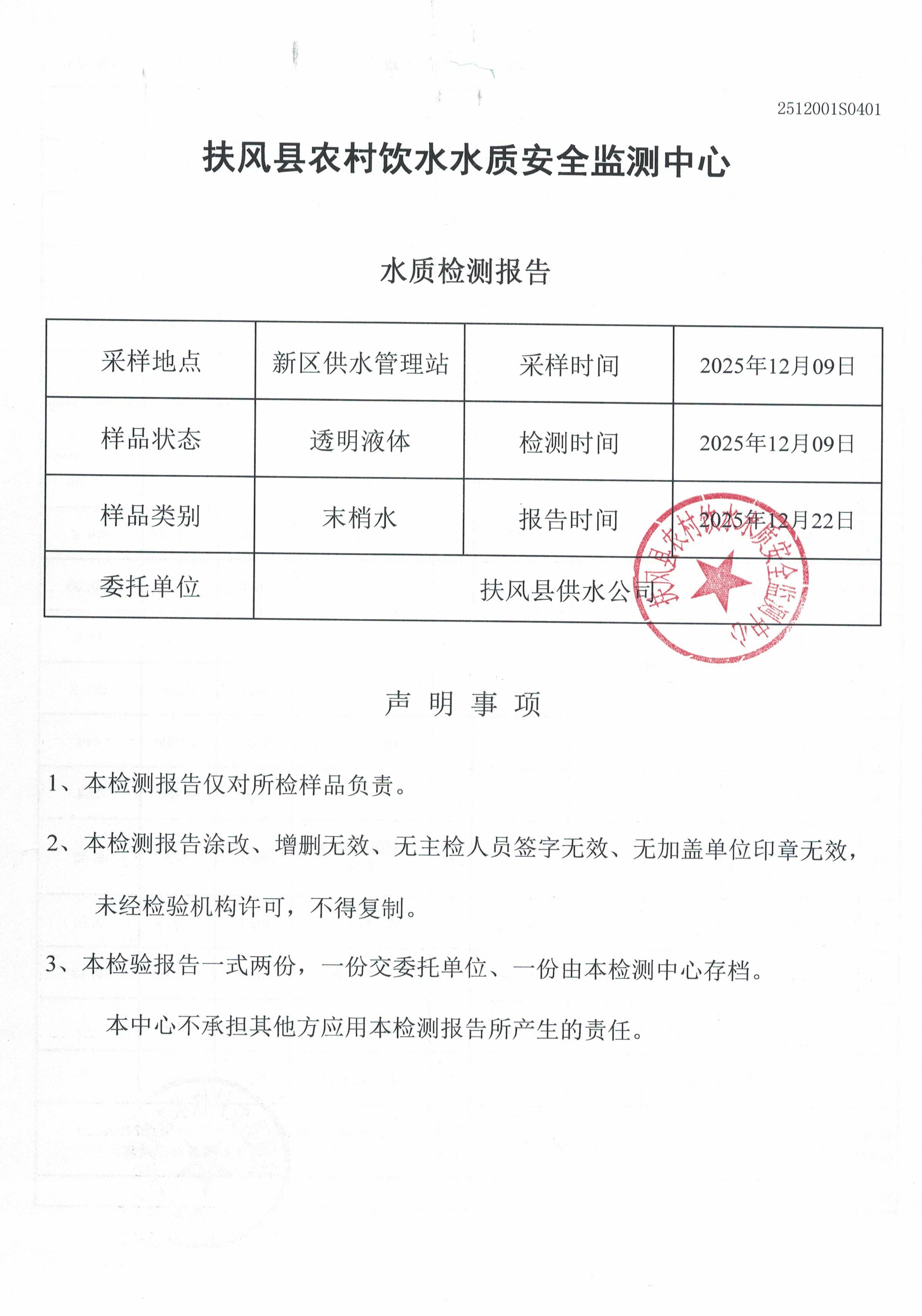 12月份新区供水站水质公示